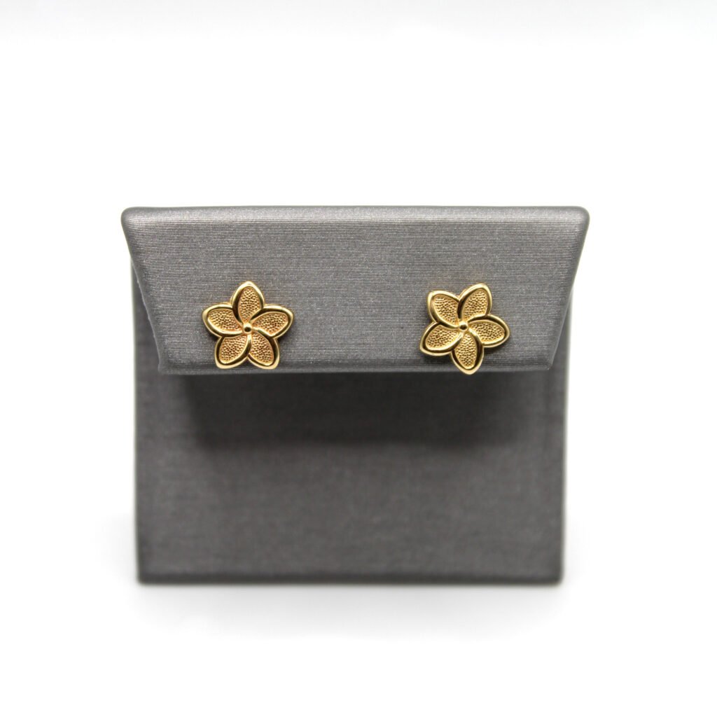 Textured Plumeria Flower Stud Earrings – 14KT Gold