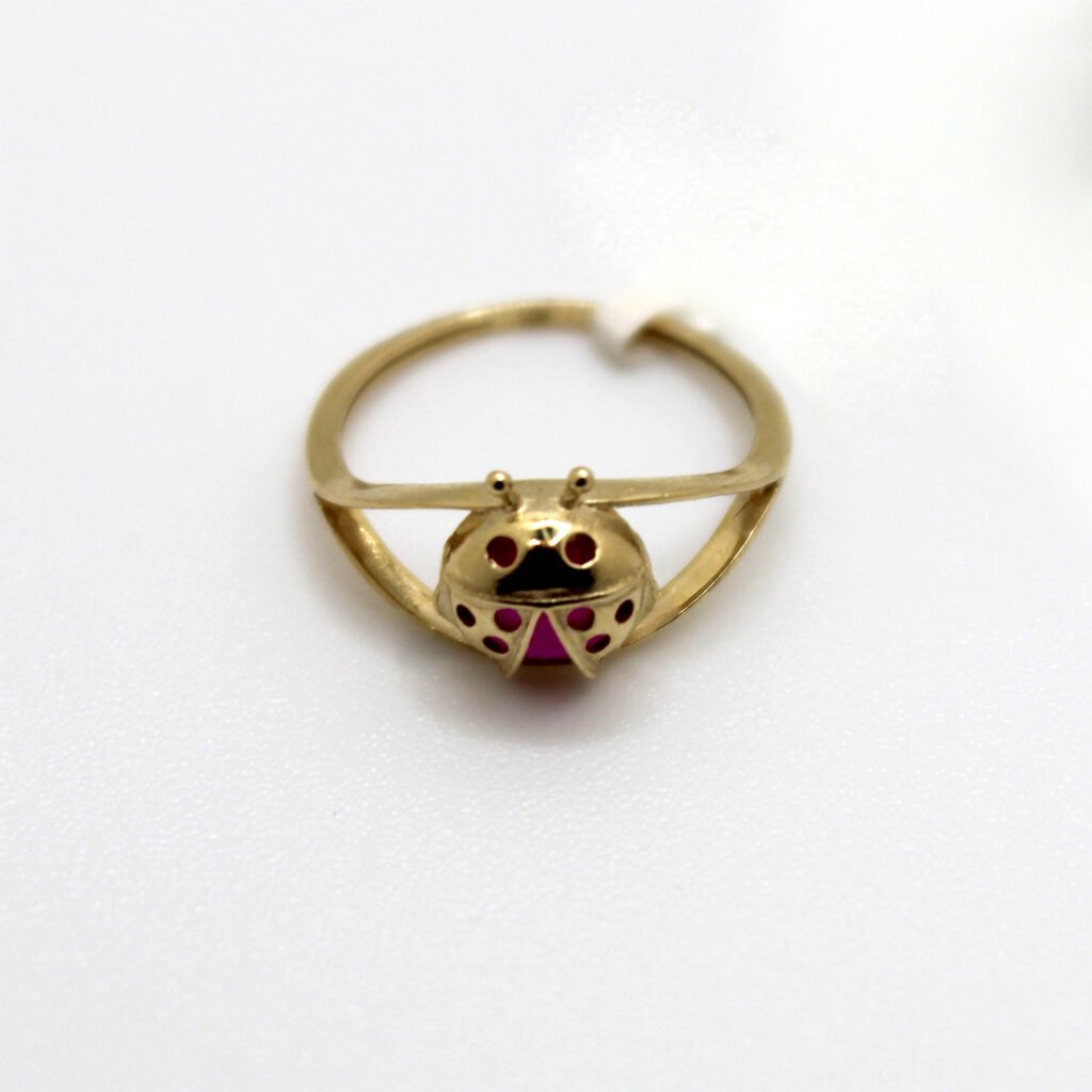 Red Stone Solitaire Ring with Rope Band – 10KT Gold, Size 7