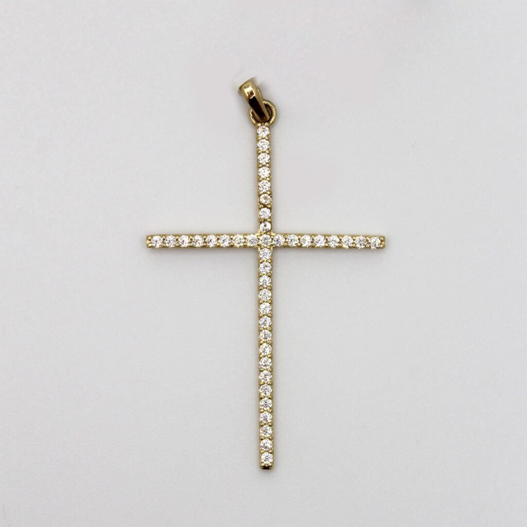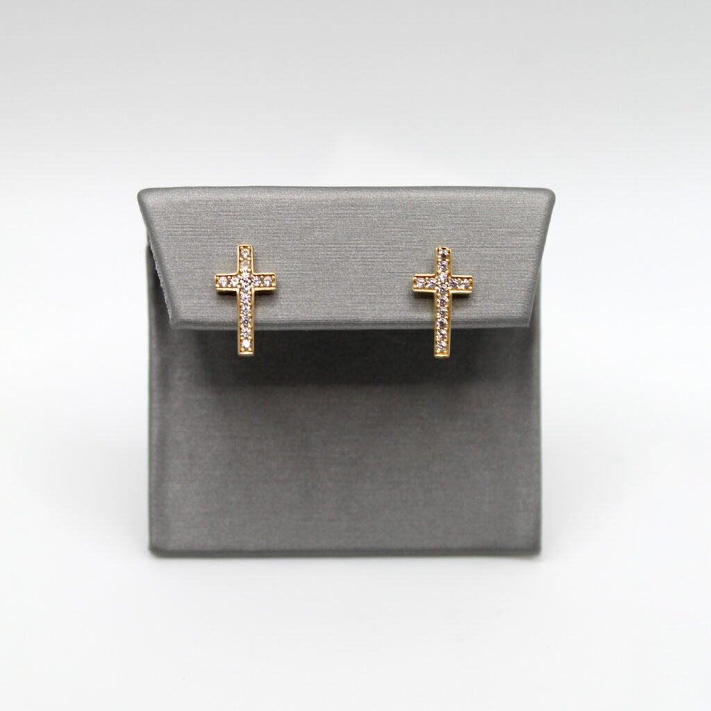 Women’s Cross Stud Earrings – 14KT Gold with Zirconia