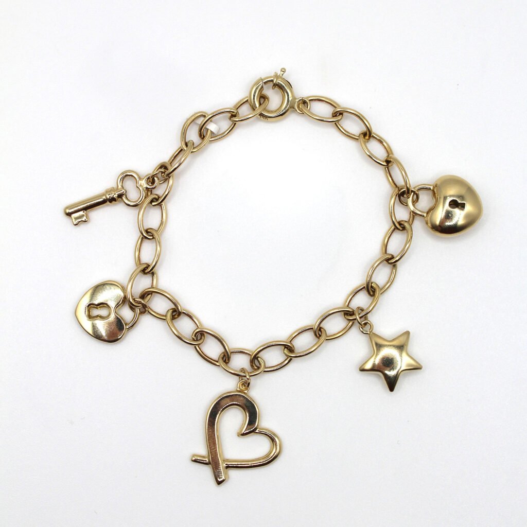 Open Heart Charms – 14KT Gold Women’s Bracelet