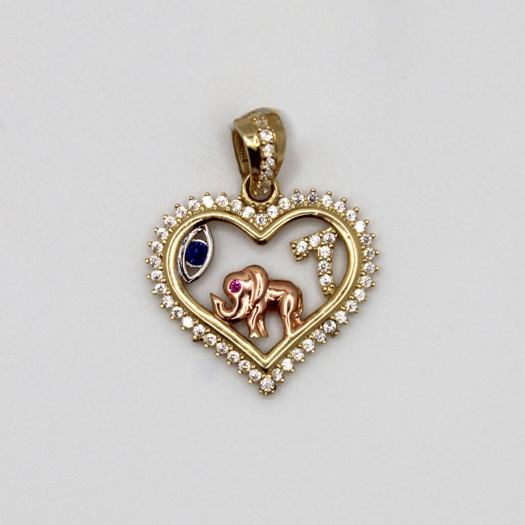 Elephant and Heart Charm Bracelet – 14KT Gold – 7″