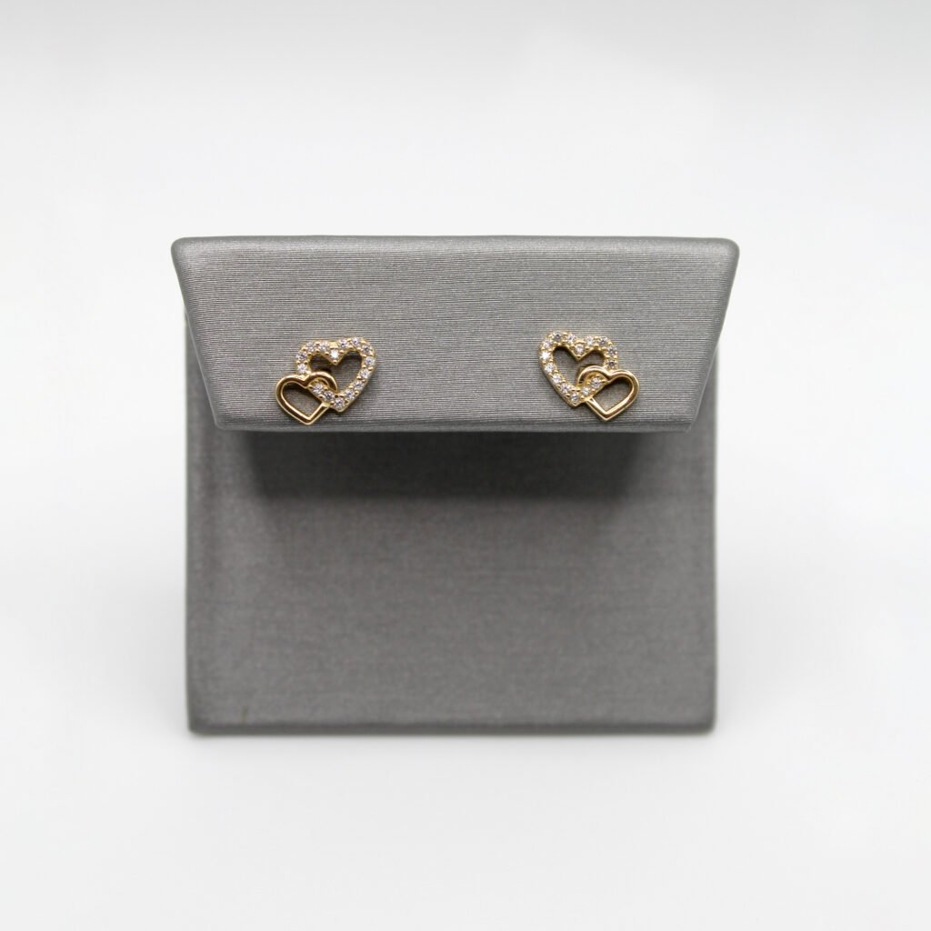 Zirconia Double Interlocking Heart Stud Earrings – 14KT Gold