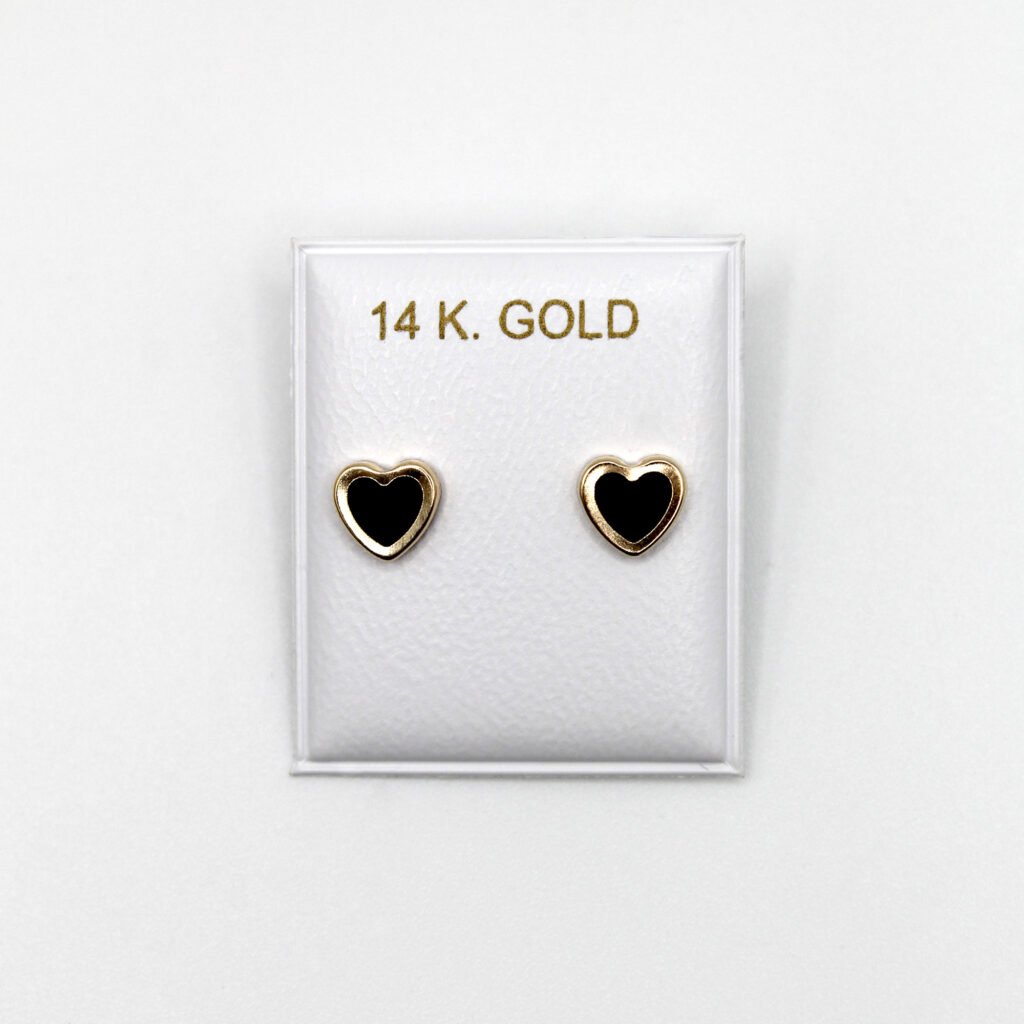 Black Enamel Heart Stud Earrings – 14KT Gold
