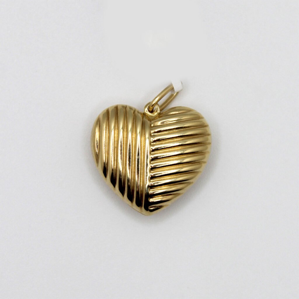 Polished Diagonal Ribbed Heart Stud Earrings – 14KT Yellow Gold