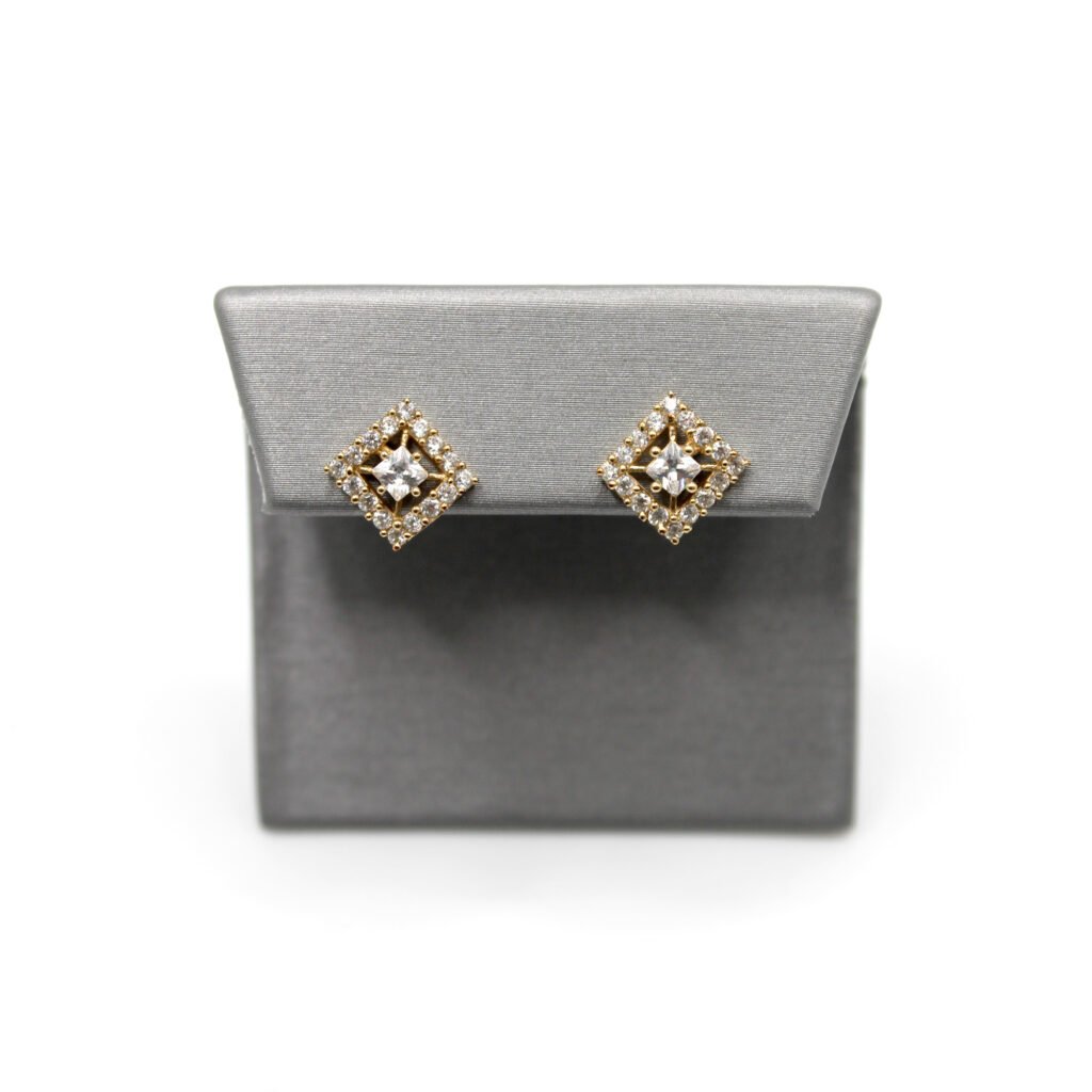 Textured Diamond Shape Stud Earrings – 14KT Gold