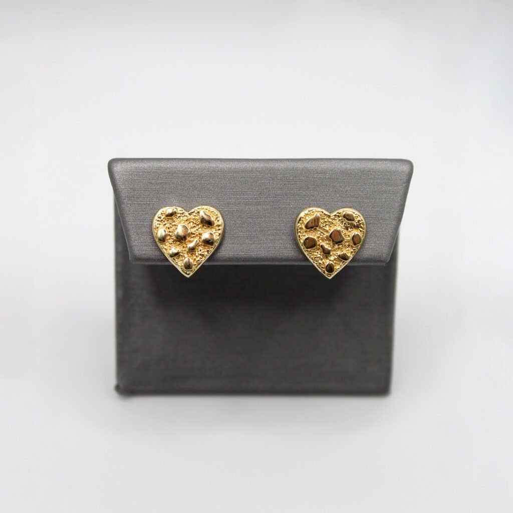 Textured Pebble Heart Stud Earrings – 14KT Gold