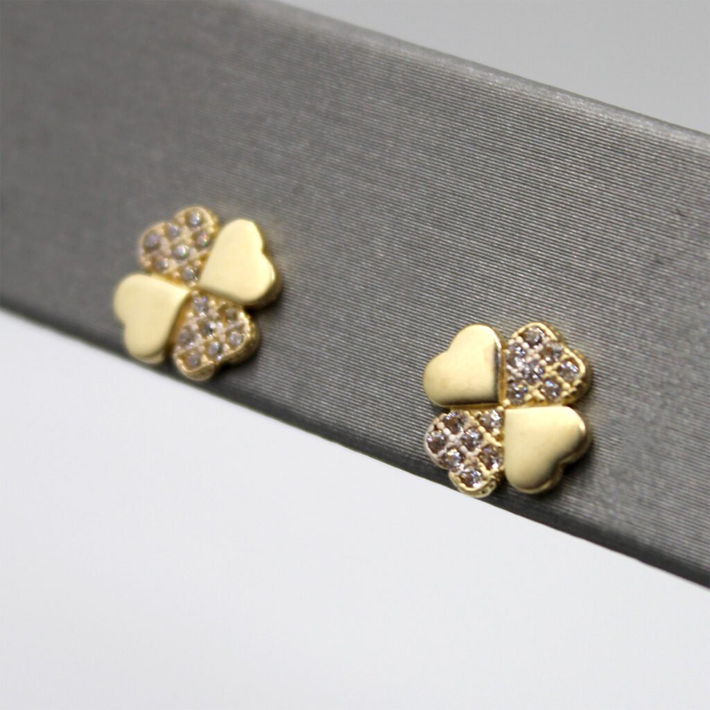 Diamond Accent Four-Leaf Clover Stud Earrings – 14KT Yellow Gold