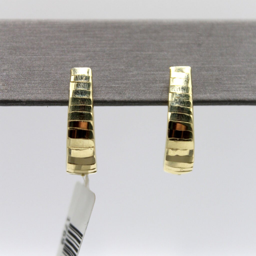 Diamond-Cut Pattern Huggie Hoop Earrings – 10KT Yellow Gold