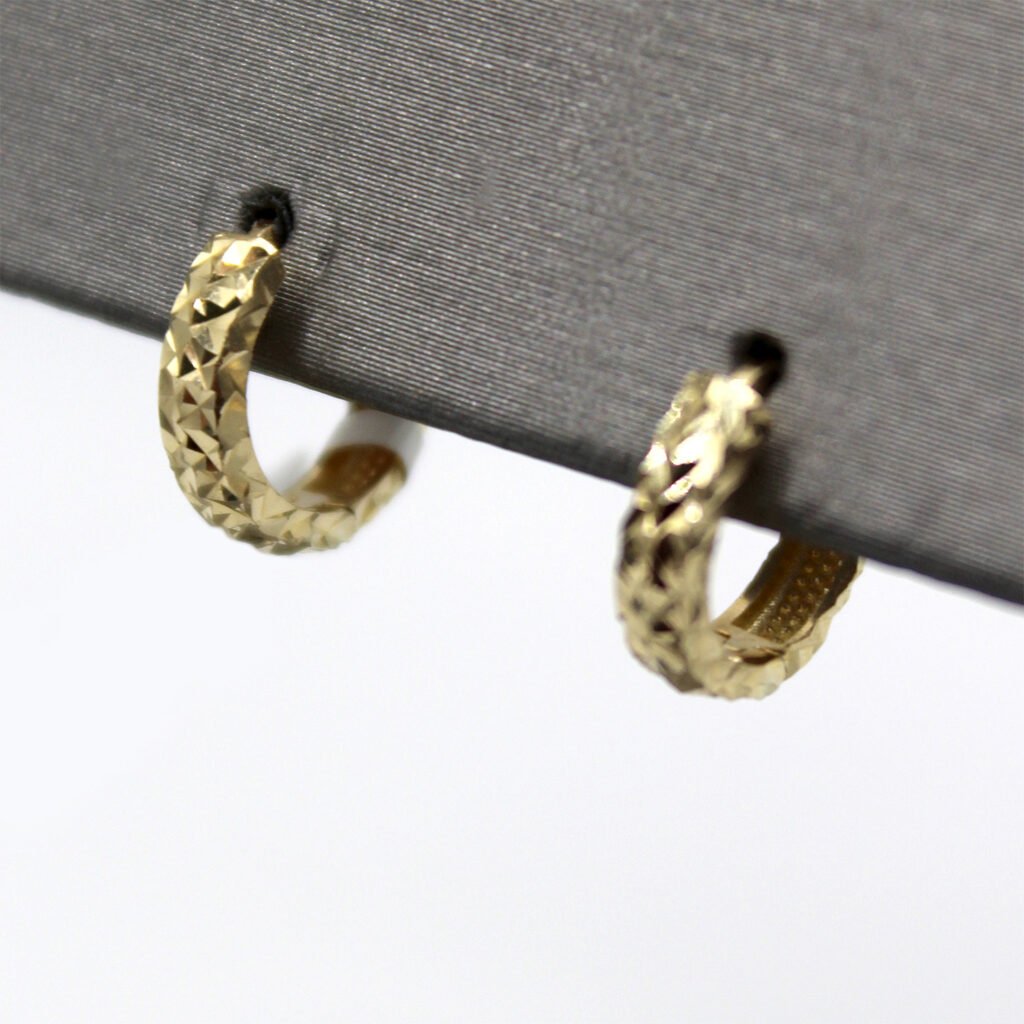 Diamond-Cut Textured Huggie Hoop Earrings – 10KT Yellow Gold