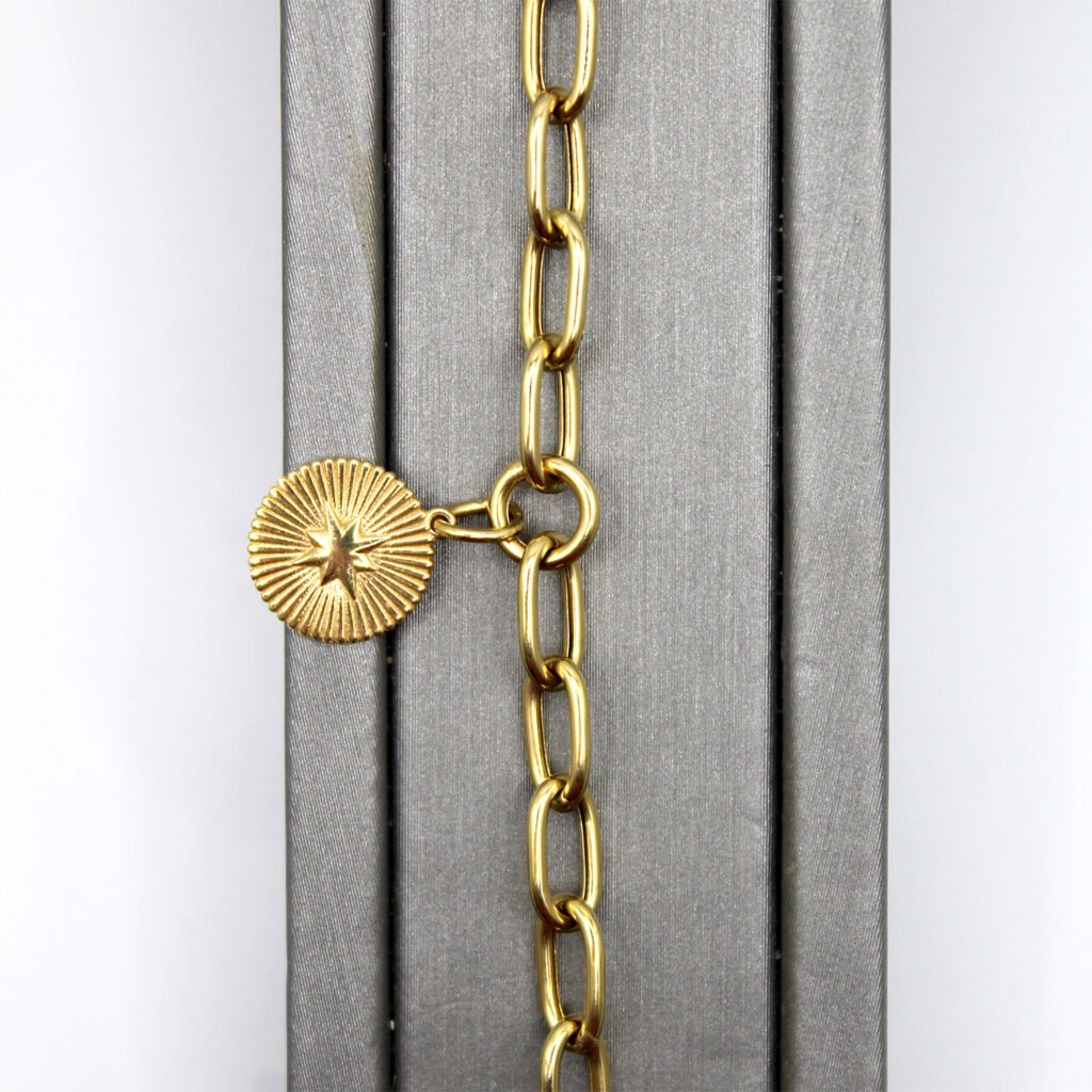 Polished Sunburst Charm Link Bracelet – 14KT Gold