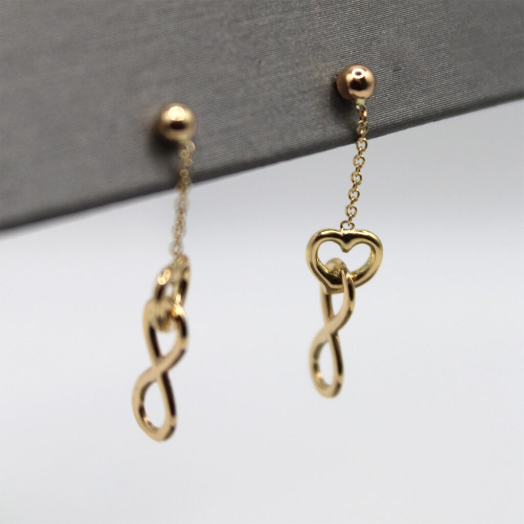 Polished Heart & Infinity Drop Earrings – 14KT Yellow Gold
