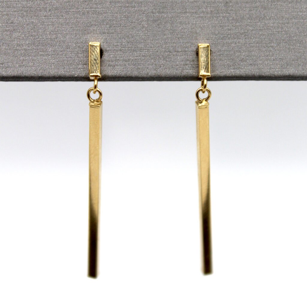 Polished Linear Bar Drop Earrings – 14KT Yellow Gold