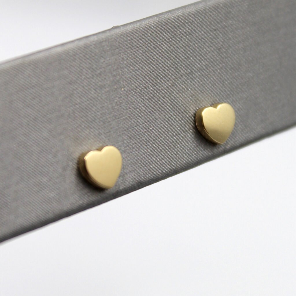 Minimalist Polished Heart Stud Earrings – 14KT Yellow Gold