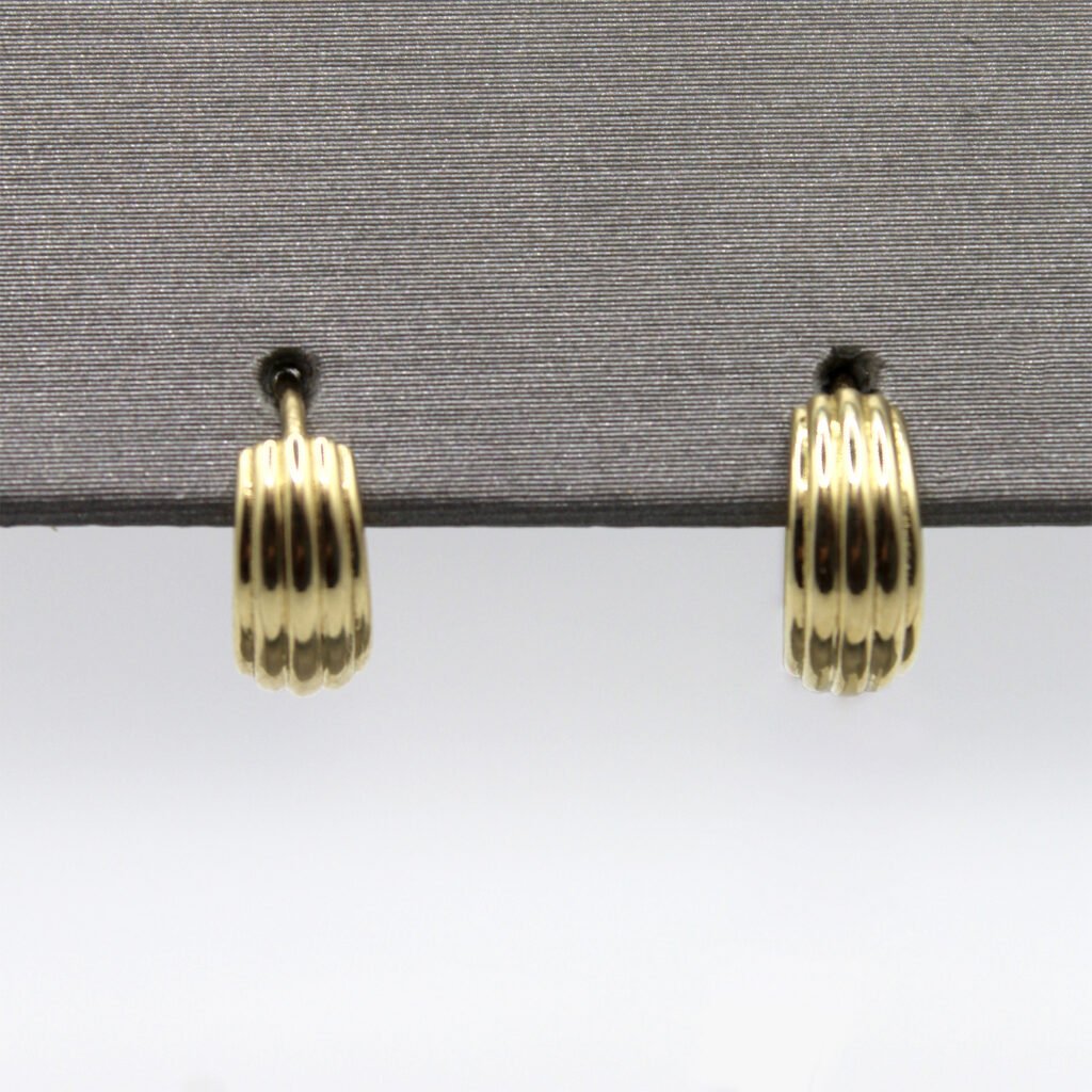 Polished Triple-Ribbed Huggie Earrings – 10KT Yellow Gold