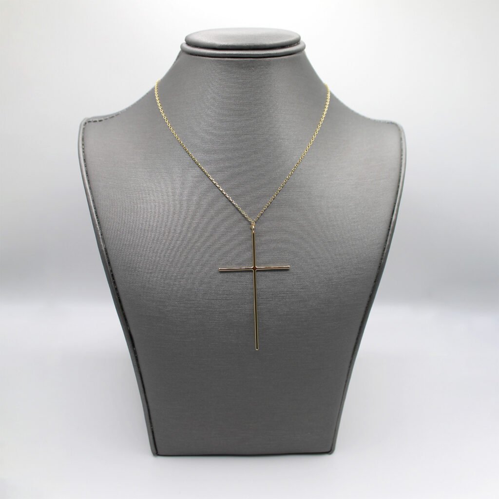 Modern Slender Cross Necklace – 10KT Gold – 16″