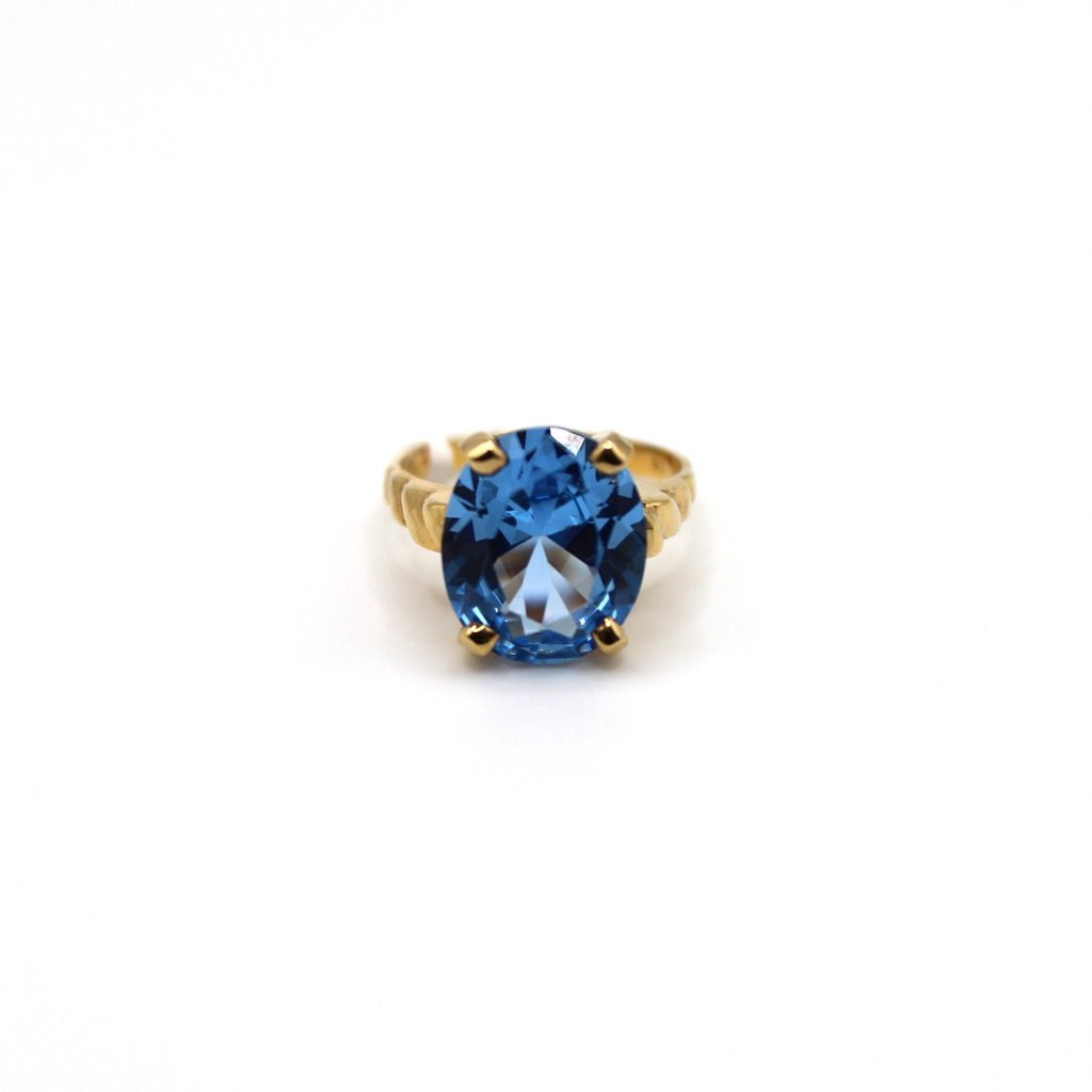 Striking Blue oval stone Ring – 10kt Gold, Size 7