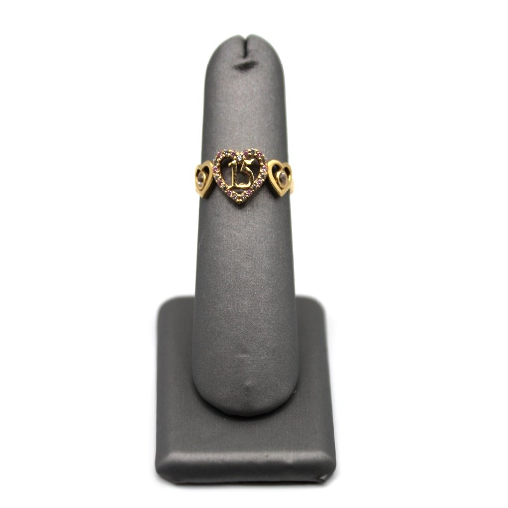 Quinceañera Heart Triple Accent Ring – 14kt Gold, Size 6 3/4