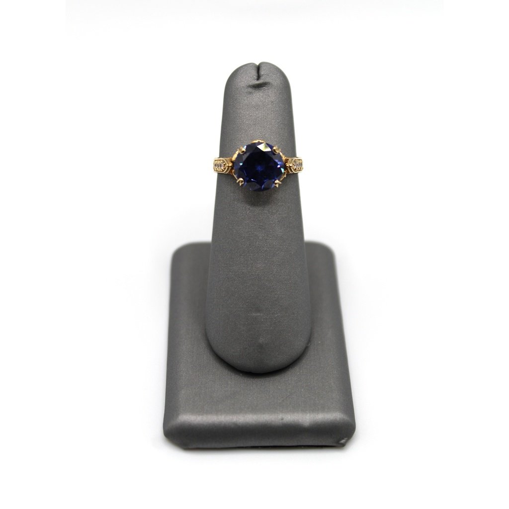 Blue Round Ring – 10kt Gold, Size 6.5