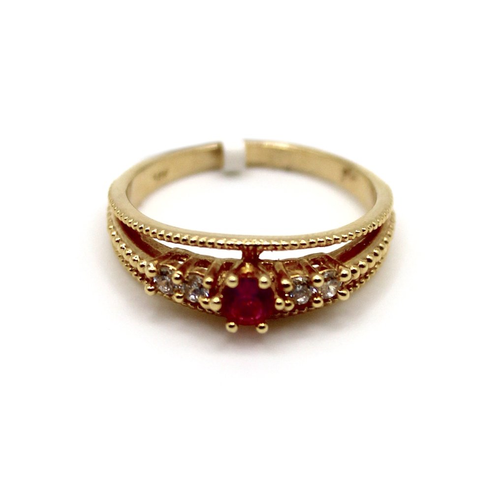 Red Stone Accent Ring – 10KT, Size 6