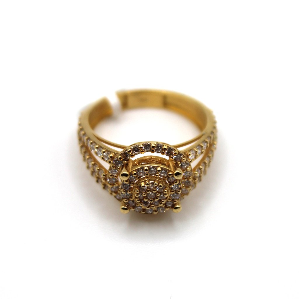 Gold Filigree Ring with Clustered Clear Stones – 14KT, Size 6
