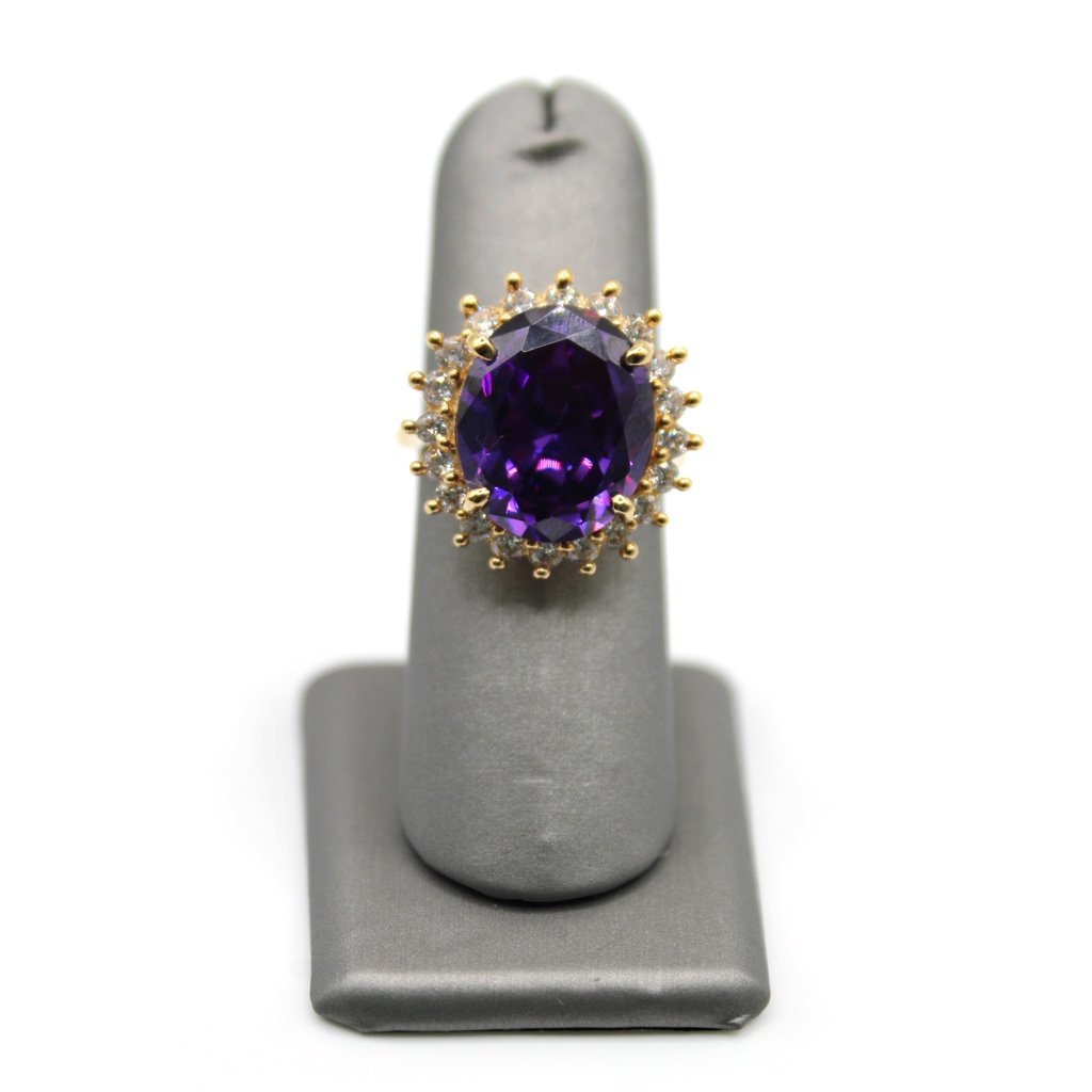 Oval Purple Stone Halo Ring – 10KT, Size 7 1/4
