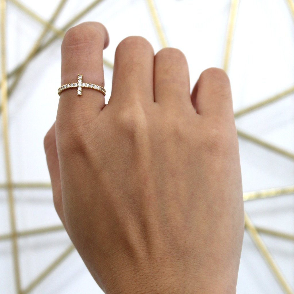 Elegant Half Cross Design Ring – 10kt Gold, Size 8 1/4
